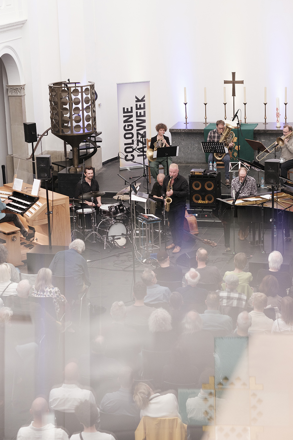 Als wiederkehrendes Motiv des Festivals fungierte die Kirchenorgel. Die Jazzweek, im Erschließen neuer Räume geschickt und erfolgreich, brachte ein Konzert mit Kit Downes im Kölner Dom zustande. Weder Bilder- noch Genrestürmer, nutzte Downes das Spannungsfeld zwischen improvisierter Musik und Sakralmusik, ohne Anhänger der letzteren zu verprellen und die der ersteren zu enttäuschen. Neben dem riesigen Orgelwerk des Doms (Querhausorgel, Schwalbennestorgel sowie Hochdruckwerk im Westbau, alle vom selben Spieltisch aus zu spielen) nutzte Downes kundig das vierte Instrument – den Raum. Kristalline, splittrige Diskantklänge rieselten von gotischen Deckengebilden, von woher auch die Pedaltöne zu kommen schienen. Downes arbeitete mit liedhaftem Material und Choralmotiven und bot nichts, was nicht auf den Spieltisch gehörte, keine außermusikalischen Bedeutungsebenen wurden aufgetischt. Gerade insofern: ein großer musikalischer und kulturpolitischer Erfolg.