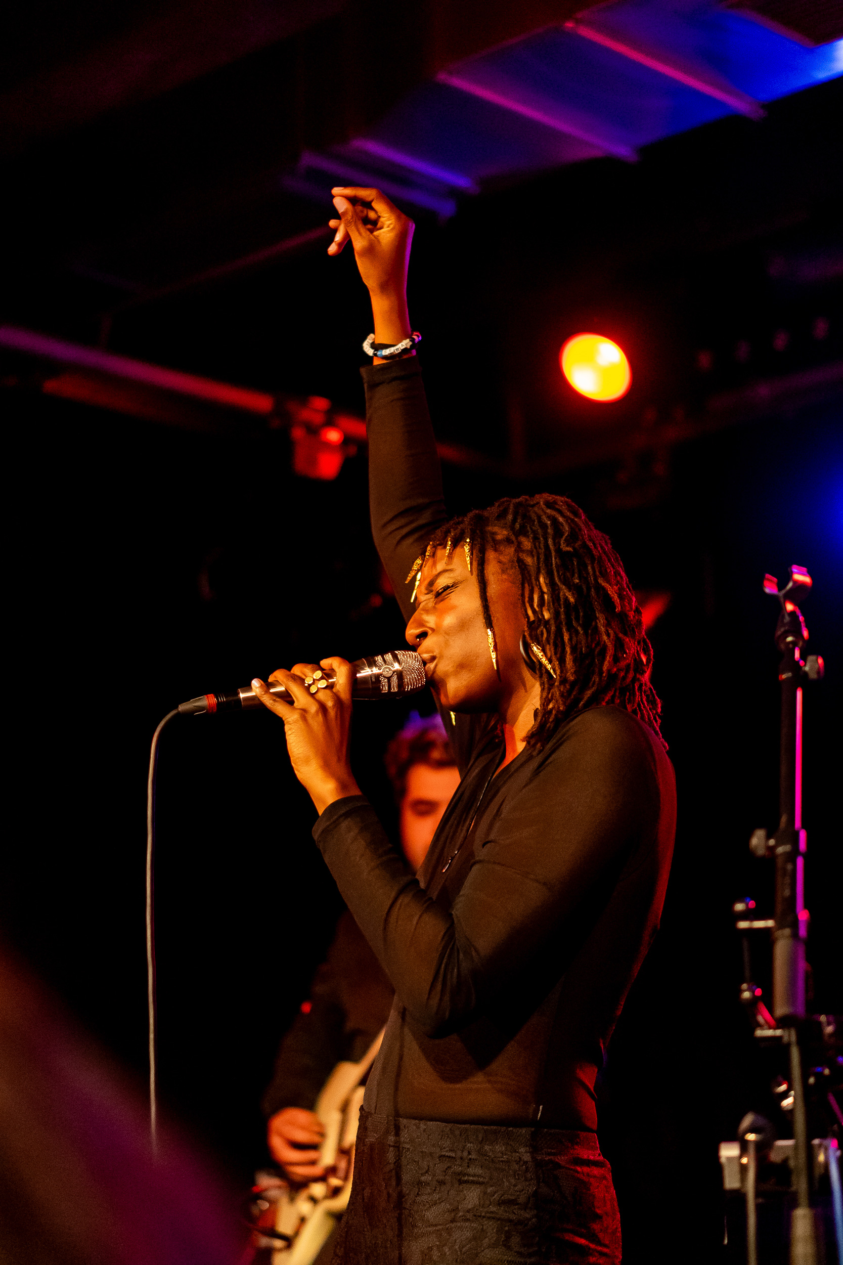 Und NUEJAZZ setzt selbst Kontraste. Während in der Galerie des Z-Baus die serbische Sängerin Jelena Kuljić in ihrem Projekt Fundamental Interactions zum 30. Jahrestag des Kriegsendes in Bosnien Texte und Gedichte mit Top-Freigeistjazzern wie Christian Lillinger (dr) oder Kalle Kalima (g) in einen aggressiven Soundkosmos integriert, gibt es nur einen Raum weiter seelenvolle leise Klänge zu hören. Auf der Bühne des intimen Roten Salons steht Enji und singt, lediglich begleitet von Kontrabass und einer zart gespielten E-Gitarre, engelsgleich ihre Lieder, auf Mongolisch. Und es macht überhaupt nichts, dass man die Texte nicht versteht. Es ist mucksmäuschenstill. Muss es auch sein. Denn der sehnsuchtsvolle Downtempo-Gesang von Enji ist ruhig, weich, voller Seele und Liebe.